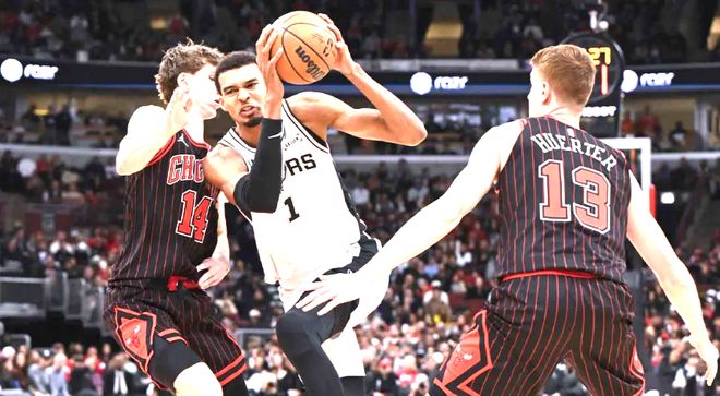 与勇士的低迷形成鲜明对比的是,马刺近期凭借3连胜强势回暖,重回西部第二,而这一切的核心,正是文班亚马的“统治级进化”与角色球员的稳定输出。上一场121-117力克公牛的比赛,文班亚马用一场“准四双”表现,向联盟宣告了自己的潜力——全场砍下38分、12个篮板、5次助攻、5次盖帽的全面数据,其中末节关键时刻命中的一记三分球,直接帮助球队确立领先优势,成为比赛胜负的“决定性因素”。文班亚马的价值,不仅体现在数据上,更在于他对比赛的“掌控力”。2.24米的身高搭配2.44米的臂展,让他在攻防两端都具备“天然优势”:进攻端,他既能在篮下完成终结,也能拉到外线投三分,还能通过传球串联队友,成为马刺进攻体系的“多功能核心”;防守端,他的5次盖帽直接限制了公牛的内线进攻,让公牛本场内线得分比赛季平均少8分,同时他的护框威慑力,迫使公牛多次改变进攻路线,间接提升了马刺整体防守效率。